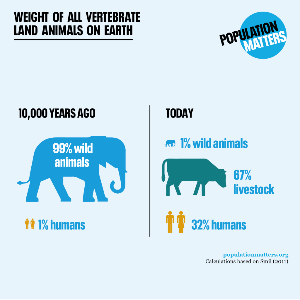 10,000 years ago there were probably around five million humans and we represented just 1% of the weight of all vertebrate land animals at the time. The last time I looked here there were 7 billion 800 million (or so) of us, and many of us weigh rather more than we should.